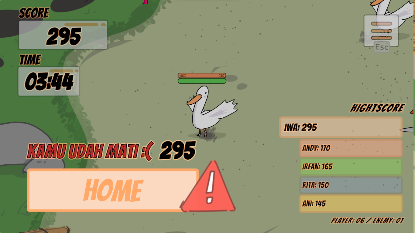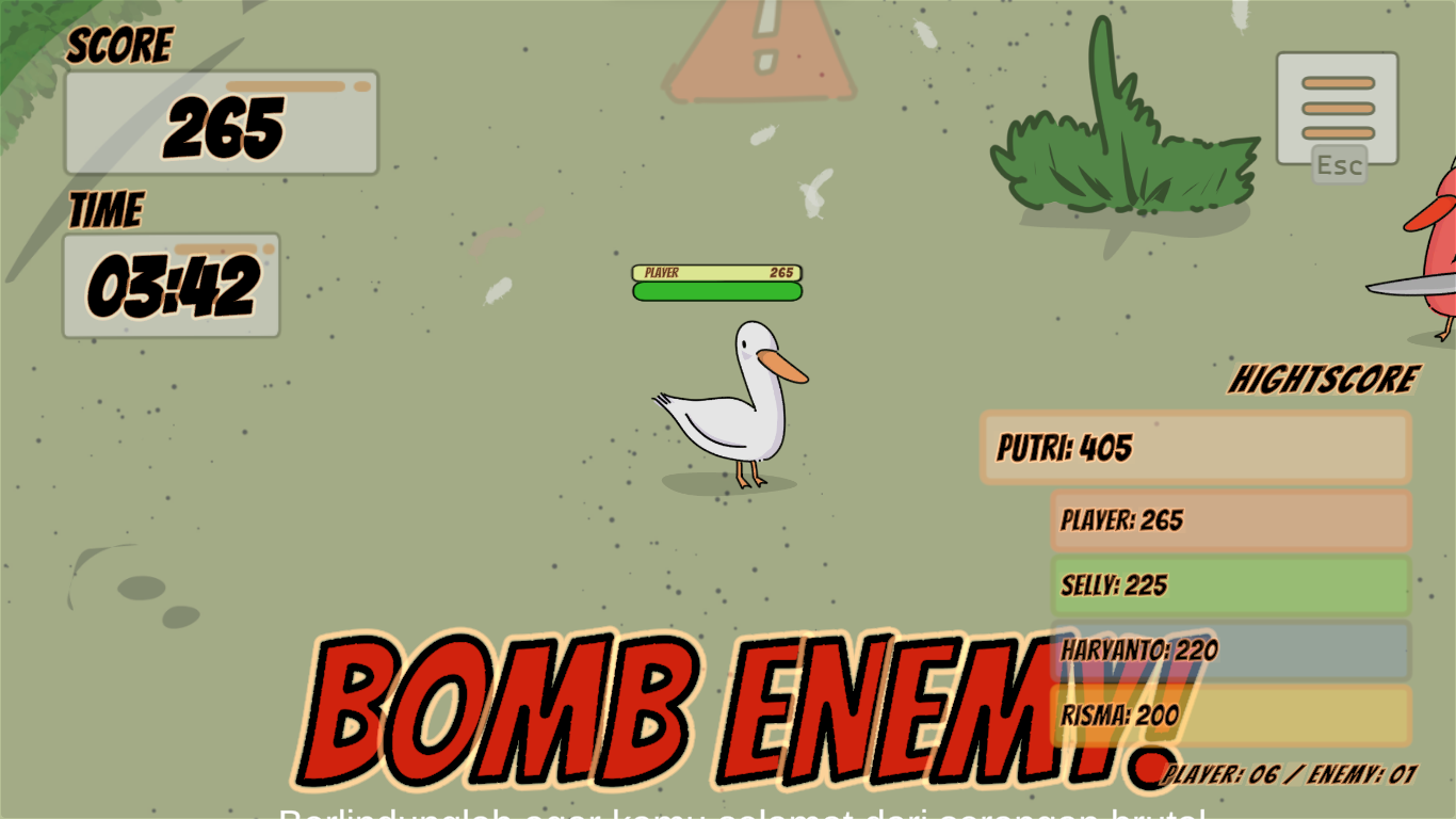 KwakKwek adalah game kasual seru tentang seekor bebek yang harus bertahan hidup di dunia yang kelihatannya lucu, tapi penuh tantangan. Misi utamamu sederhana: makan sebanyak mungkin cacing untuk bertahan hidup. Tapi jangan lengah—ada bebek merah yang siap mengacaukan permainanmu. Mereka berbahaya dan bisa menghentikan langkahmu kapan saja. Setiap sesi permainan berdurasi sekitar 5 menit, tapi jangan remehkan. Semakin lama kamu bertahan, semakin sulit tantangannya. Game ini menguji refleks, fokus, dan strategi bertahan hidup. Buat kamu yang suka tantangan, coba buktikan: berapa skor tertinggi yang bisa kamu capai? Dan kabar baiknya, KwakKwek juga hadir dalam versi multiplayer, jadi kamu bisa bermain bersama atau melawan pemain lain untuk melihat siapa yang paling jago bertahan hidup di dunia para bebek ini. Pokoknya, langsung mainin dulu aja—sisanya bakal kamu rasain sendiri. ©2024