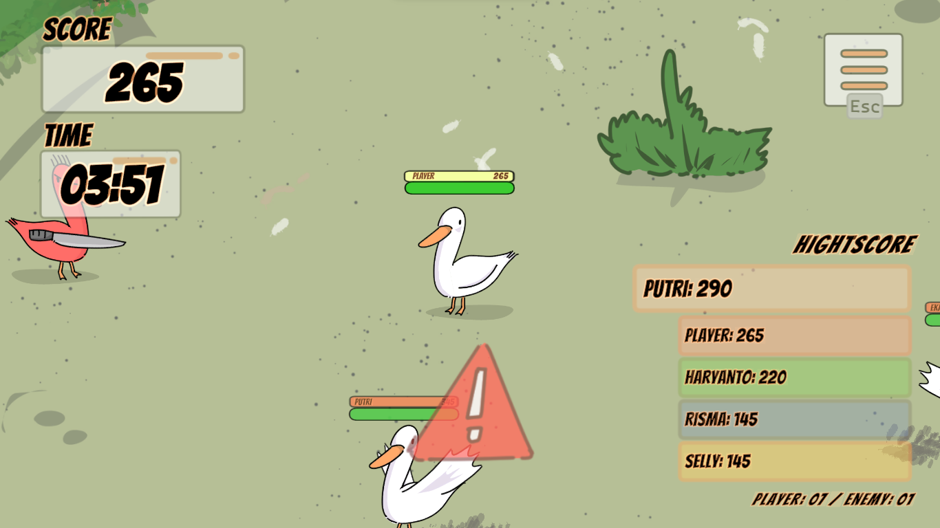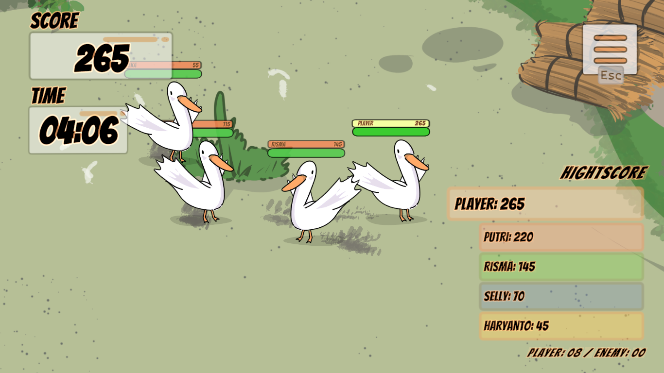 KwakKwek adalah game kasual seru tentang seekor bebek yang harus bertahan hidup di dunia yang kelihatannya lucu, tapi penuh tantangan. Misi utamamu sederhana: makan sebanyak mungkin cacing untuk bertahan hidup. Tapi jangan lengah—ada bebek merah yang siap mengacaukan permainanmu. Mereka berbahaya dan bisa menghentikan langkahmu kapan saja. Setiap sesi permainan berdurasi sekitar 5 menit, tapi jangan remehkan. Semakin lama kamu bertahan, semakin sulit tantangannya. Game ini menguji refleks, fokus, dan strategi bertahan hidup. Buat kamu yang suka tantangan, coba buktikan: berapa skor tertinggi yang bisa kamu capai? Dan kabar baiknya, KwakKwek juga hadir dalam versi multiplayer, jadi kamu bisa bermain bersama atau melawan pemain lain untuk melihat siapa yang paling jago bertahan hidup di dunia para bebek ini. Pokoknya, langsung mainin dulu aja—sisanya bakal kamu rasain sendiri. ©2024